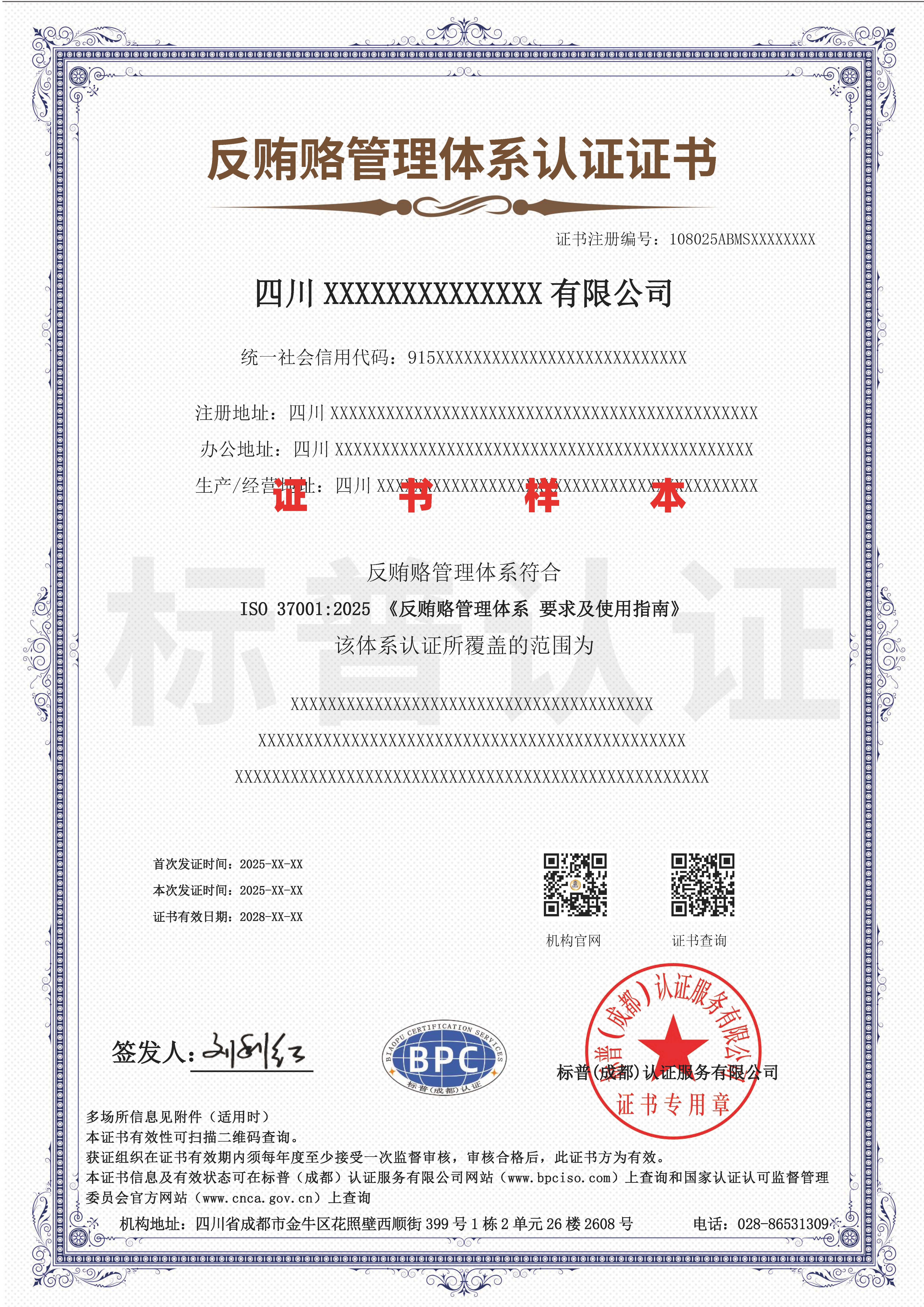 6、在某些项目招标中,ISO37001认证可能会成为参与投标的必备条件之一。