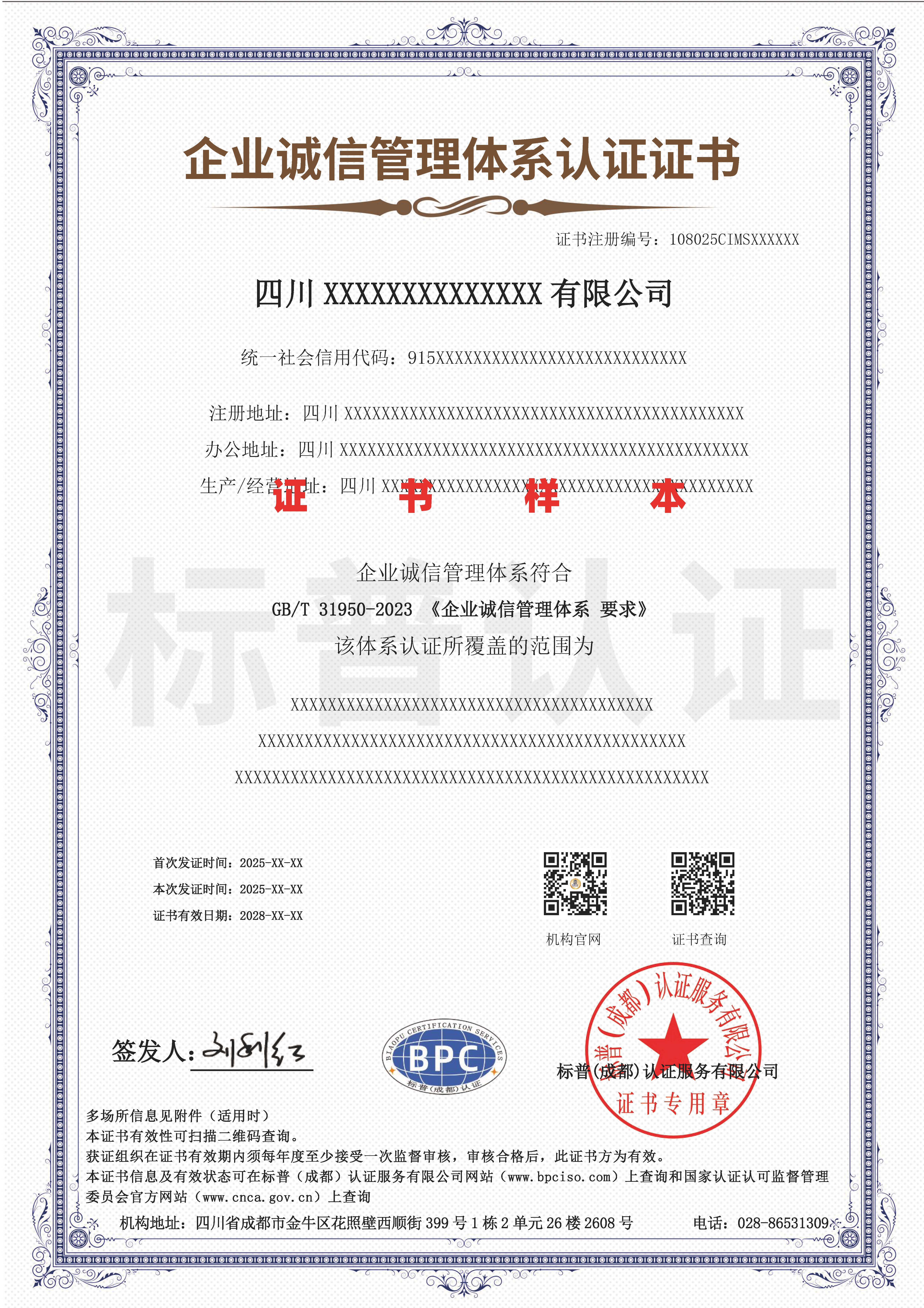 企业诚信管理体系认证采用国家标准,由专业认证机构审核认证。企业符合国家标准,通过认证,颁发认证证书。该证书可在CNCA网站上获得。它是权威和可信的。市场上有太多的假证书。需要仔细识别!!!
