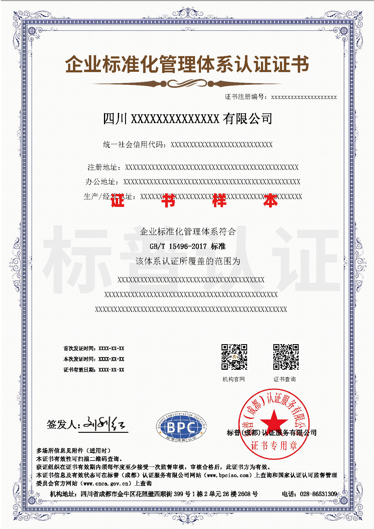 企业标准化管理体系认证 证书办理方案 GB/T 15496-2017